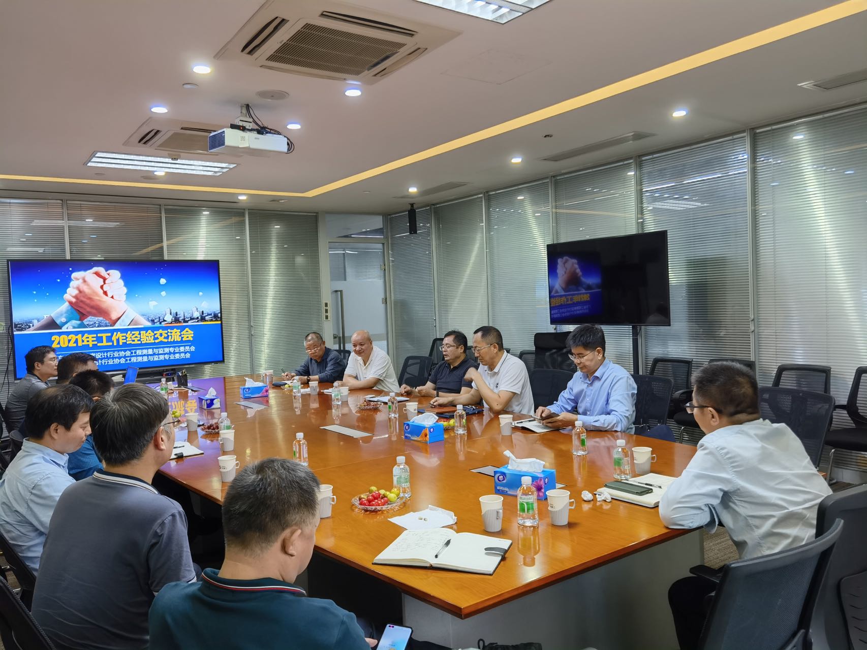 2021年11月3日下午,深圳市勘察设计行业协会工程测量与监测专业委员会主任委员王双龙,副主任委员傅晓珊、荣延祥、丁进选以及委员宋军一行五人,赴广东省工程勘察设计行业协会工程测量与监测专业委员会进行学习交流,受到省专委会主任委员赵旭、省专业委会、广东省重工建筑设计院有限公司热情接待。学习交流会在省专业委员会挂靠单位广东省重工建筑设计院有限公司四楼会议室举行。